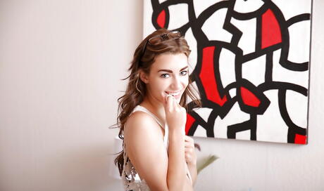Nubiles: Foxy american teen Tali Dova in shorts exposes tiny tits while stripping out