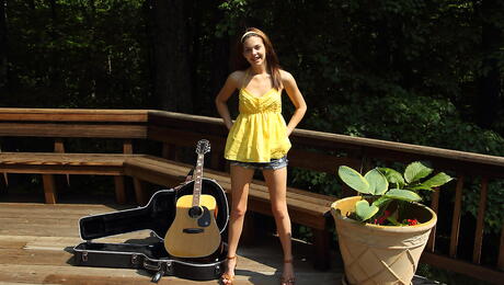 ALS Scan: Gracile american teen Kiera Winters in shorts showing big titties and toying her twat outdoor