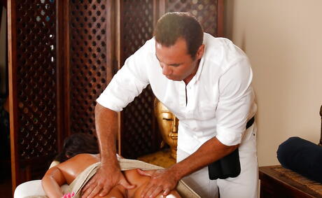 Massage Parlor: Hot american Delilah Davis deepthroating dick and enjoys a cumshot in her mouth