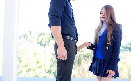 Pure 18: Hot american teen Alice March in fancy skirt suck huge cock and fucked hard