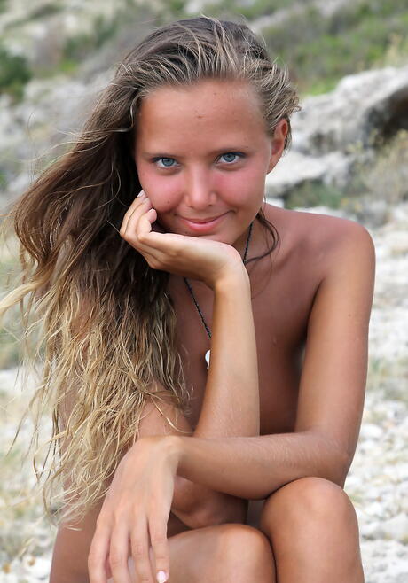 Met Art: Hot blond youthful Katya Clover in fancy skirt uncovering tiny tits and shaved pussy at beach