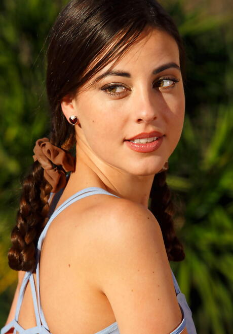 Met Art: Hot dark-haired young Lorena B in fancy skirt makes some foot fetish action outdoor