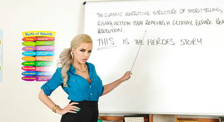 Digital Playground: Hot german blond milf Nina Elle in sexy undies shows big boobies and spreads her legs in office