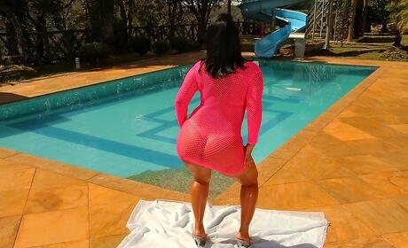 Mike in Brazil: Hot latina Darlene reveals her ass and masturbates near the pool