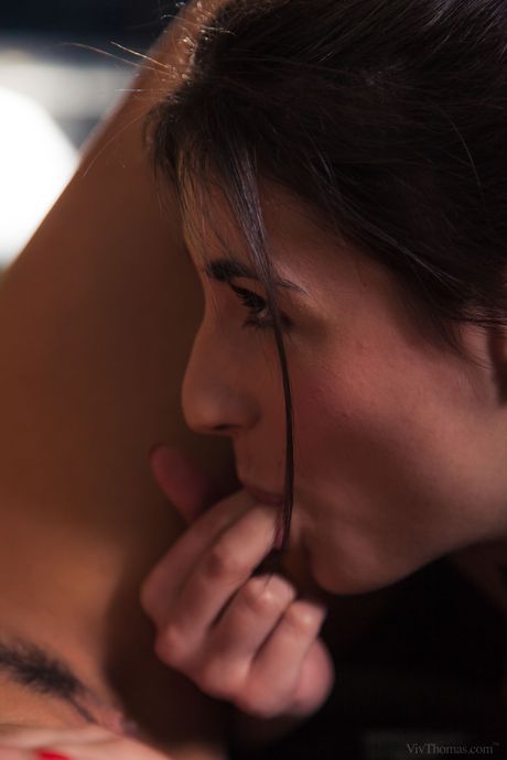 Viv Thomas: Hot lesbians Anissa Kate & Ena Sweet kiss before licking pussies on a sofa