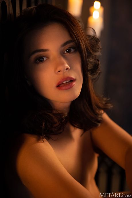 Met Art: Intriguing teen Aleksandrina models totally naked in a room with candelabras