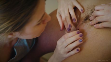 Viv Thomas: Kalisy & Sabrisse kiss before licking pussies in the kitchen