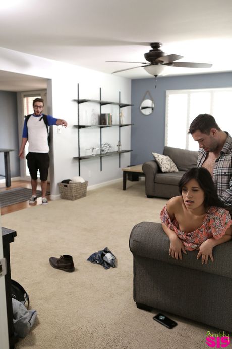 Bratty Sis: Latina teen Jasmine Gomez gets banged by two guys in a threesome