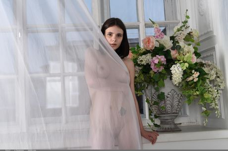Domai: Lean teen Flora E gets nude on a sofa without embarrassment