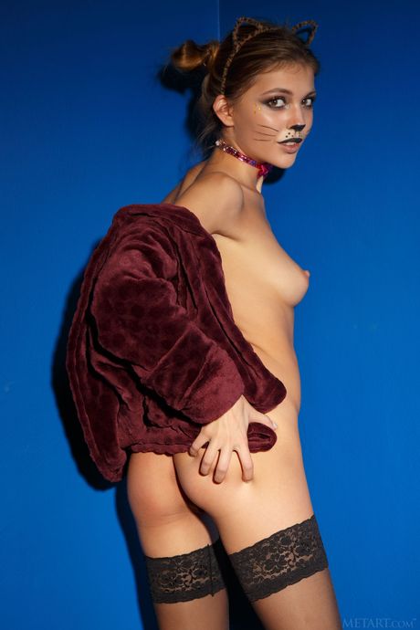 Met Art: Lovely teen Monika Dee removes a cat costume to pose nude