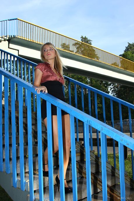 Erotic Beauty: Lovely teen Sharon A gets naked on a balcony while wearing a choker