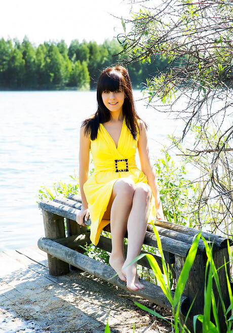 Rylsky Art: Luscious dark-haired young Zelda B in fancy skirt baring her ass and spreading her legs outdoor