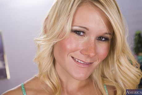 Naughty America: Mature blonde MILFs Juliana Jolene & Misty Vonage strip & show their big tits