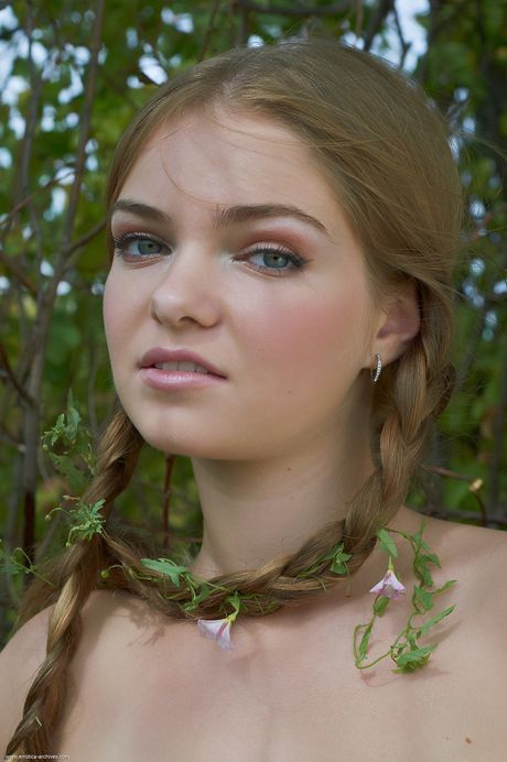 Errotica Archives: Naked teen Ossia strikes great solo poses on a patio in pigtails