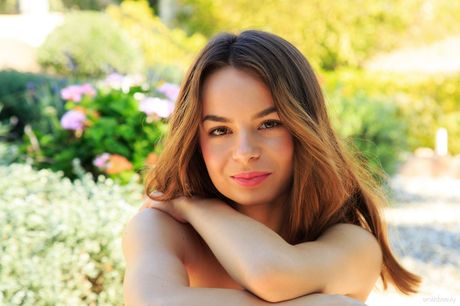 Erotic Beauty: Natural redhead Debora A models totally naked in a garden setting
