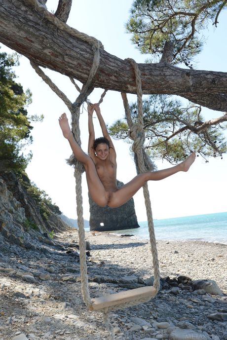 Met Art: Perfect teen Foxy Di models totally naked on a beach confidently