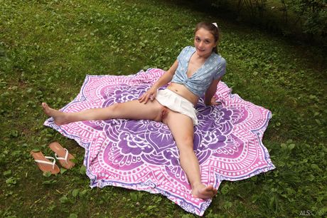 ALS Scan: Petite amateur babe Mira Monroe stripping and pissing outdoor