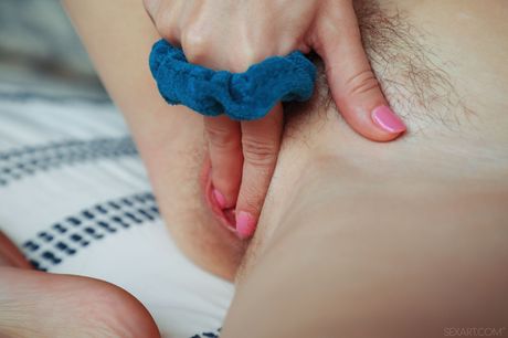 Sex Art: Petite teen Sofi Shane fingers her pussy after getting naked on a bed