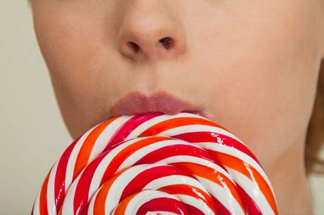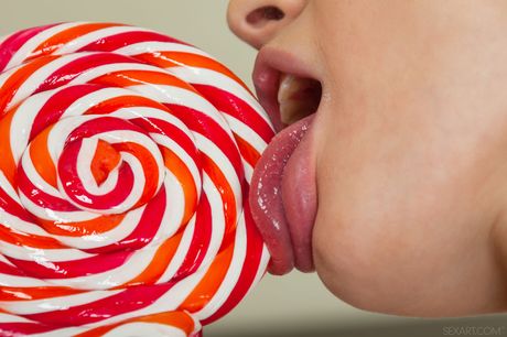 Sex Art: Petite teen Winnie licks a lollipop before masturbating with a dildo