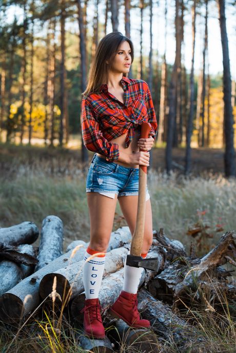Met Art: Petite teen Zelda B bares it all in the wilderness while chopping wood