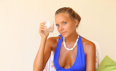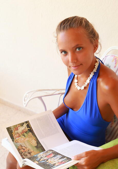 Met Art: Rangy blond teen Katya Clover in nice skirt exposing big knockers and spreading her legs