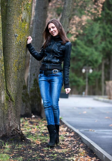 Met Art: Rangy brunette babe Quinn A in sexy jeans likes some hot foot fetish outside