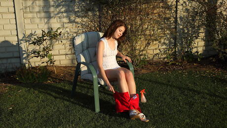 ALS Scan: Rangy hungarian young Judy Smile exhibiting tiny tits and playing with toy outdoor