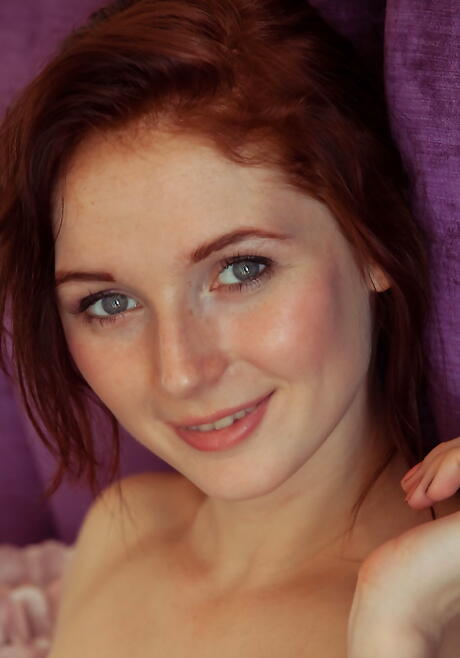 Met Art: Rangy redheaded youthful Leona Honey exhibits tiny tits and spreads her legs