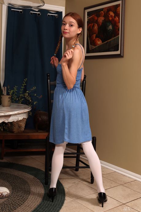 ALS Scan: Redheaded teen Jessica Marie pisses on the floor after getting naked