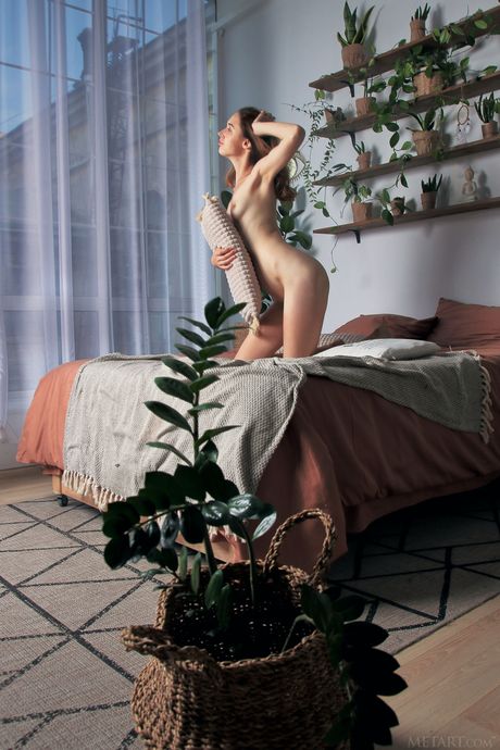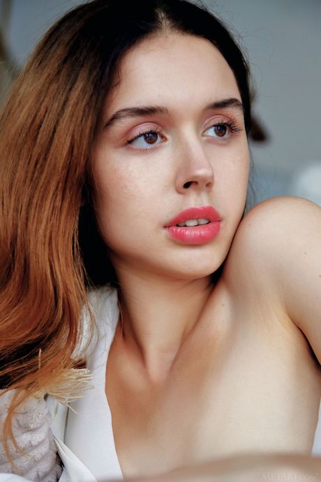 Met Art: Riccarda displays her tiny tits and shaved pussy in the nude