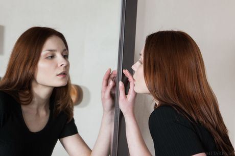 Met Art: Russian babe Guerlain A gets naked in heels on top of a bed