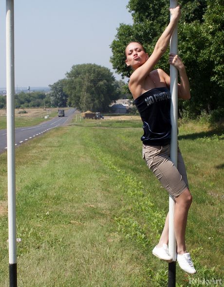 Rylsky Art: Russian model Paloma strips naked and exhibits her big tits outdoors