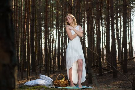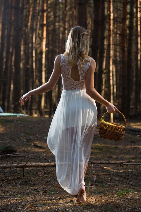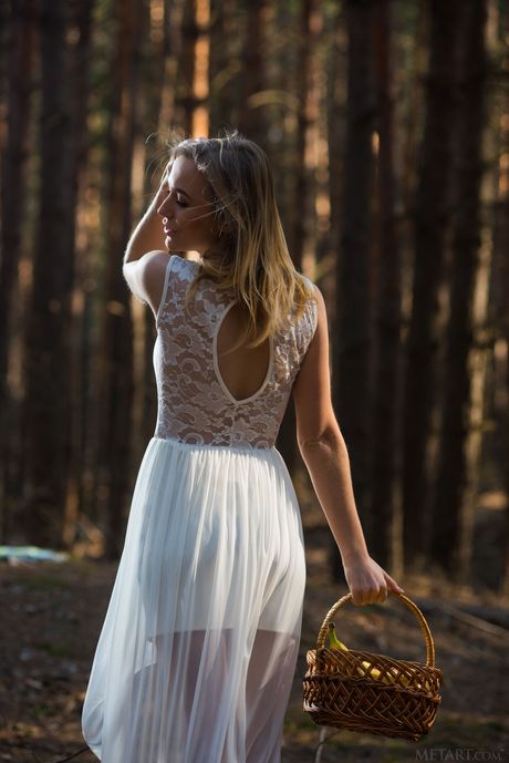 Met Art: Sexy blonde Aislin strips naked in the countryside & shows her big tits & bald pussy