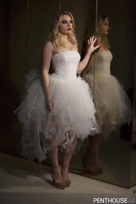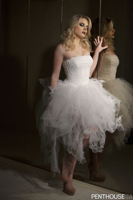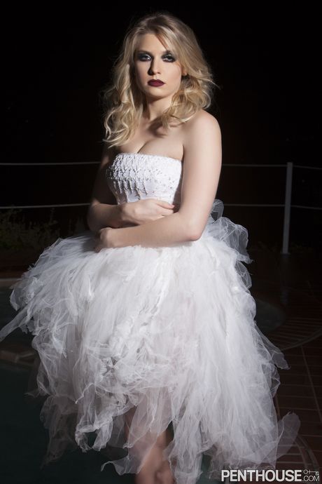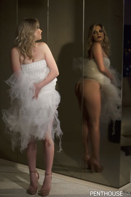 Penthouse Gold: Sexy blonde maid Giselle Palmer squeezes her natural tits in the pool