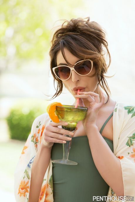 Penthouse Gold: Sexy brunette Christiana Cinn strips off her swimsuit and goes naked
