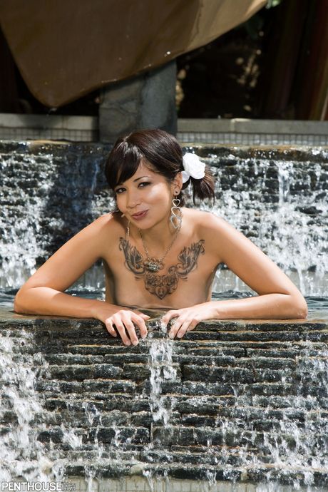Penthouse Gold: Sexy brunette Coco Velvett strips and bares all in a Buddhist temple garden