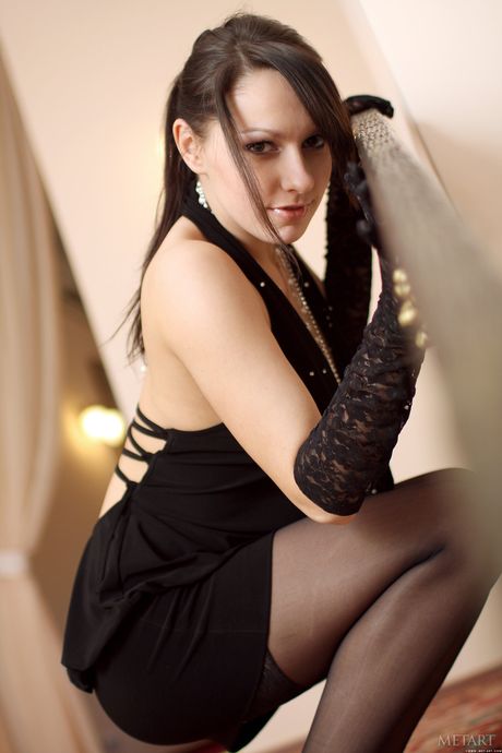Met Art: Sexy brunette Denise A demonstrates her big tits and hairy pussy at a party