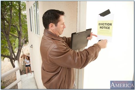 Naughty America: Sexy brunette Katie Jordin strips and shows her shaved pussy in a solo