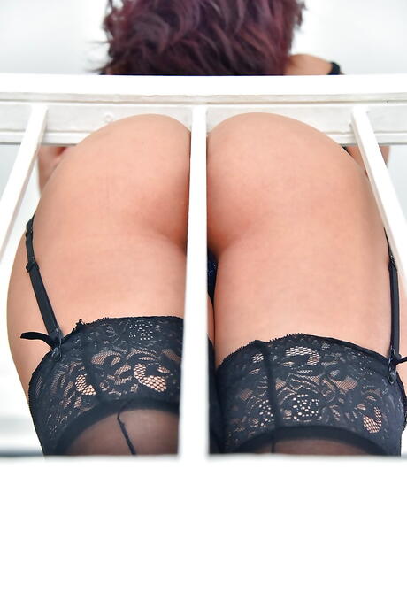FTV MILFs: Sexy brunette milf Sheena in hose revealing her butt and spreading her legs outside