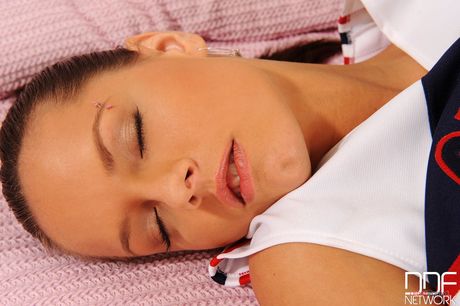 Porn World: Sexy cheerleader Kari strips and toys her horny pussy in her bedroom