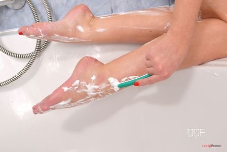 Porn World: Sexy Czech Alexis Crystal shaves her legs and toes in the shower