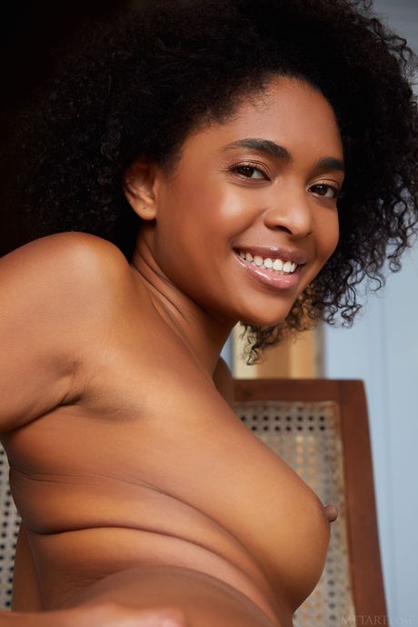 Met Art: Sexy ebony teen Luna C removes a dress to pose nude in high heels