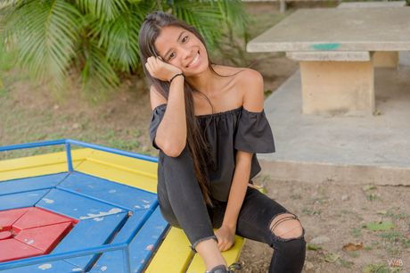 Watch 4 Beauty: Sexy Latina Karrin Torres strips her jeans and poses in her heels