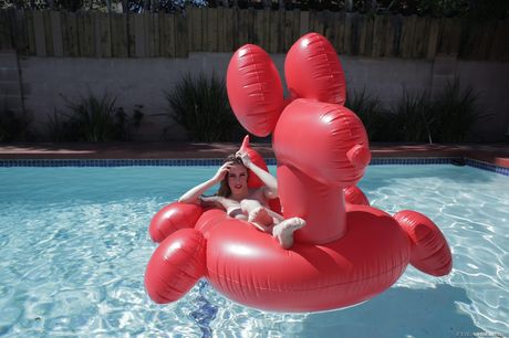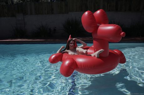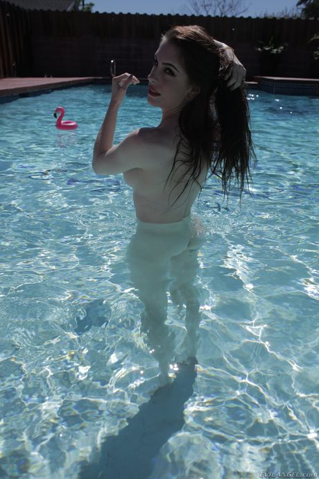 Evil Angel: Sexy redhead Anna De Ville strips down in a pool before a guy joins her