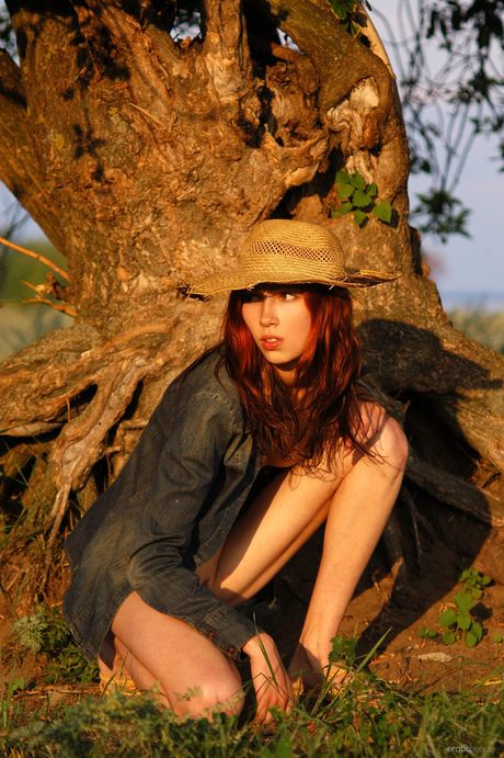 Erotic Beauty: Sexy redhead Carla gets naked on a blanket in the backyard