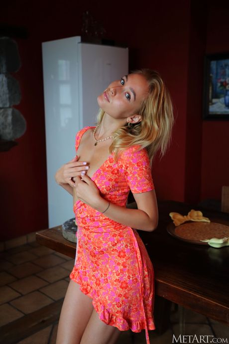 Met Art: Skinny blonde Kelly Collins gets naked in the kitchen and shows her tiny tits
