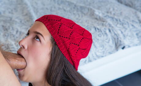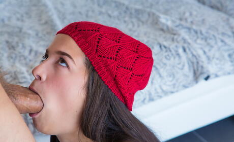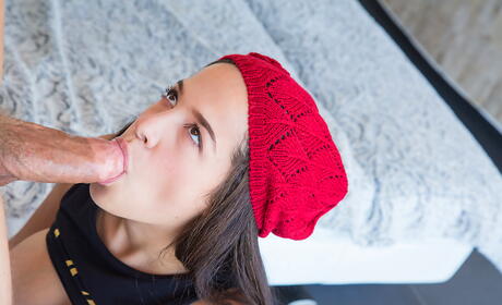Teens Love Huge Cocks: Slender latina brunette teen Annika Eve work on cock and gets a cumshot on her face