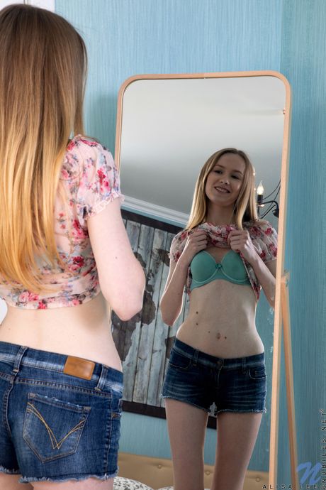 Nubiles: Slender teen Alisa Lee strips off her lingerie and masturbates in the bedroom