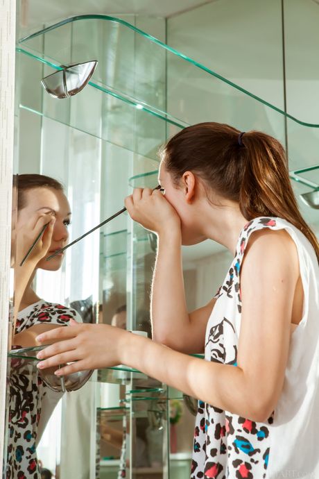 Love Hairy: Slender teen Iva shows her tiny tits and hairy pussy in the nude