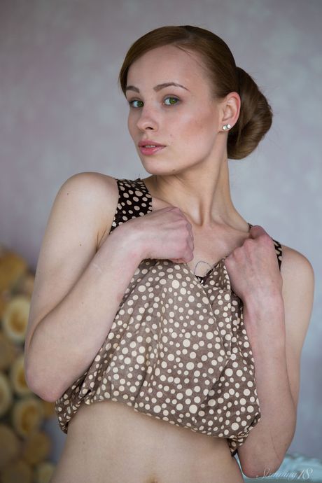 Stunning 18: Slender teen Mia shows her small tits and poses naked in a solo